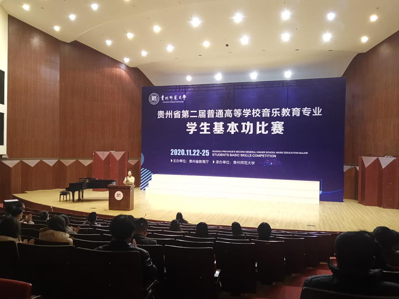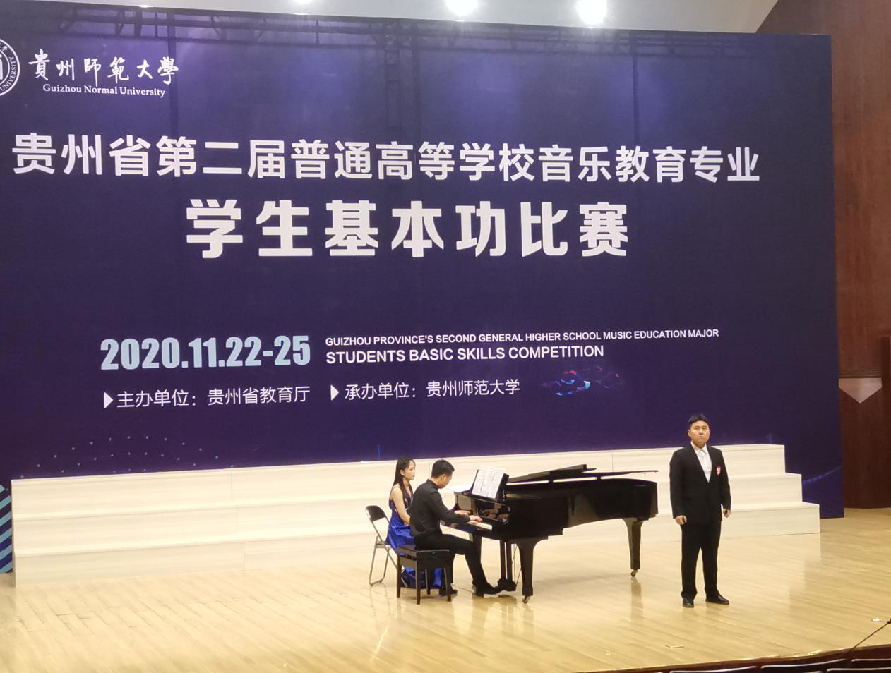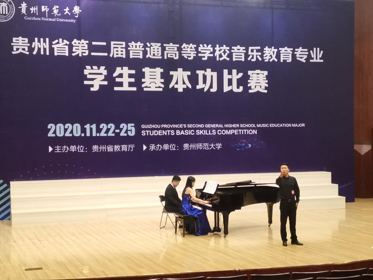 2020年11月23至25日,由省教育厅主办的贵州省“第二届普通高等公司音乐教育专业员工基本功比赛”在贵州师范大学国际音乐厅举行。全省共25个代表队、70多名员工参加了此次比赛。代表williamhill英国官网参赛的是公司2017级音乐学的三位员工:王超权、姚茂、范玲玲。此次比赛由键盘系主任伍星老师领队,键盘系章晓丰老师随同前往比赛现场协助工作。