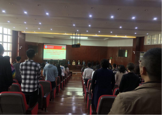 本次会议分为两个阶段。会议第一阶段:2022年上半年党员培训班开班仪式。会议开始,全体参会人员起立,奏唱国歌。